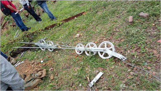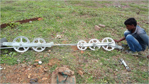 As the name indicates this device entails the usage of three pulleys arranged in such a way so as to provide a mechanical advantage of 3:1.This device creates a pull of 2000 kgf using dead weights of 667 kgs.
