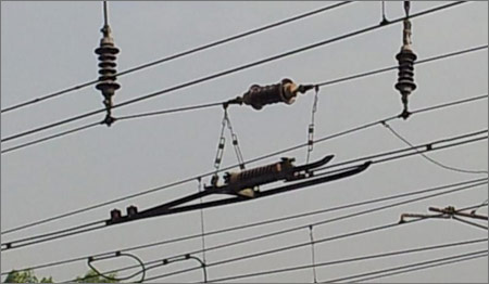This is the standard sectioning insulator which is extensively used on the major 25KV electrified network of the Indian Railways.